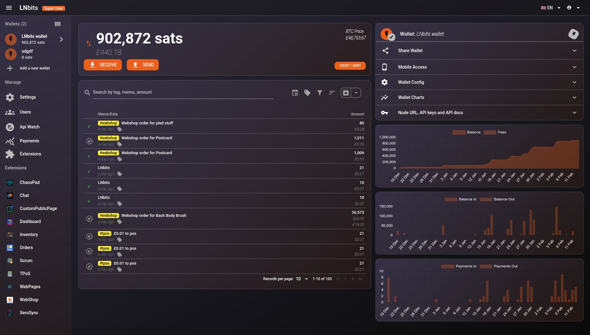LNbits keeps the core minimal and powerful.